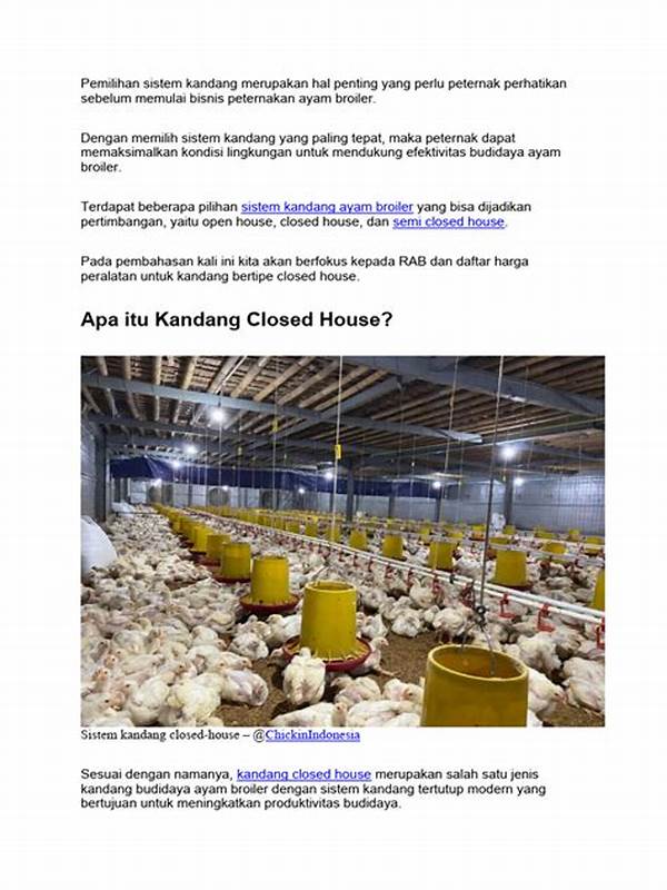 Tersedianya kandang yang nyaman, ventilasi yang baik, dan saluran pembuangan yang efektif adalah hal esensial. Selain itu, akses ke sumber air bersih dan listrik stabil juga sangat dibutuhkan. Kandang yang didesain baik, tidak hanya meningkatkan kesejahteraan hewan, tetapi juga memudahkan perawatan dan pengawasan. Jangan lupa, kebersihan dan sanitasi kandang harus diperhatikan untuk mencegah penyakit menular.