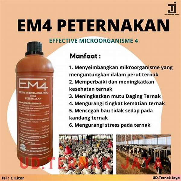 Mengaplikasikan EM4 secara tepat dalam praktik peternakan sehari-hari dapat membawa perubahan signifikan dalam hasil akhir. Beberapa peternak menyaksikan peningkatan produktivitas ternak hingga 20% lebih tinggi dibandingkan dengan metode konvensional. Mikroorganisme dalam EM4 meningkatkan efektivitas pakan sehingga ternak mendapatkan nutrisi maksimal yang dibutuhkan untuk pertumbuhan dan perkembangan optimal. Fenomena ini menawarkan bukti bahwa teknologi tidak perlu meninggalkan warisan agrikultur kita, tetapi justru dapat memperkuat dan meningkatkan daya saing global kita.