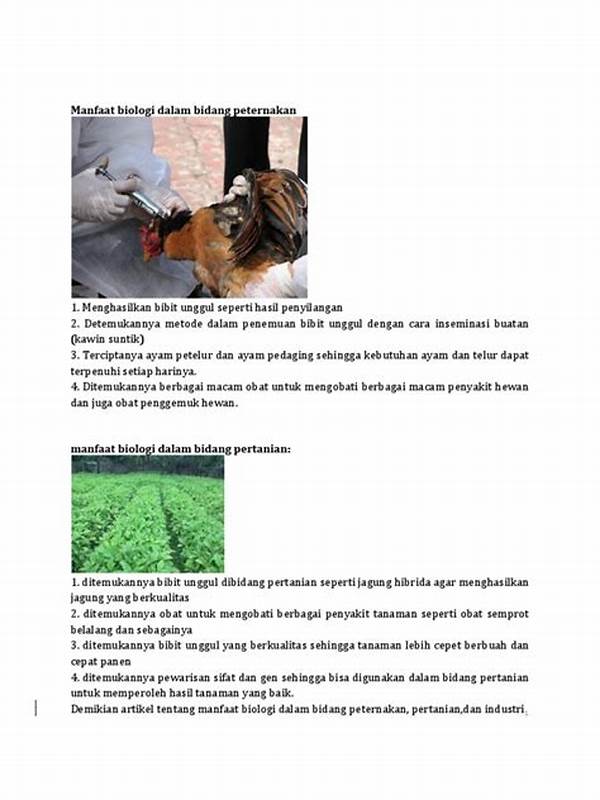 Biologi bukan hanya sekadar mata pelajaran yang perlu dilewati untuk naik kelas atau lulus ujian akhir. Lebih dari itu, biologi memiliki banyak manfaat praktis, terutama di bidang peternakan. Bayangkan sebuah peternakan yang berhasil meningkatkan produksi susu sapi hingga 30% hanya dengan mendalami prinsip-prinsip biologi! Dengan memahami bagaimana organisme bekerja pada tingkat seluler, peternak dapat mengambil langkah-langkah strategis untuk meningkatkan kesehatan dan produktivitas hewan ternak mereka. Apakah Anda tahu bahwa biologi dan genetika memainkan peran penting dalam pengembangan ras hewan baru? Mari kita telusuri lebih lanjut bagaimana ilmu biologi membawa perubahan ke peternakan modern.